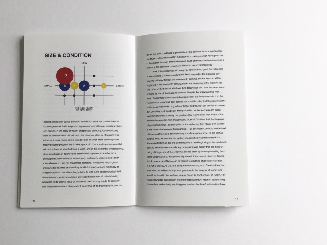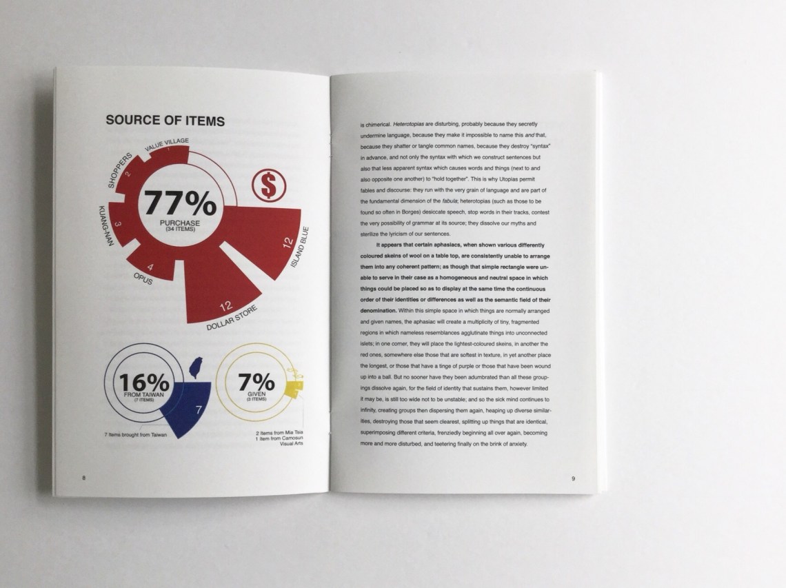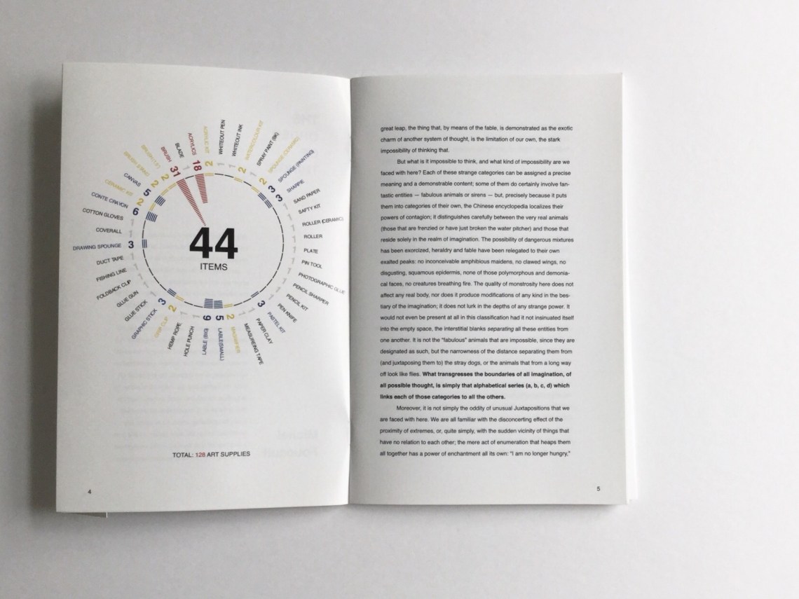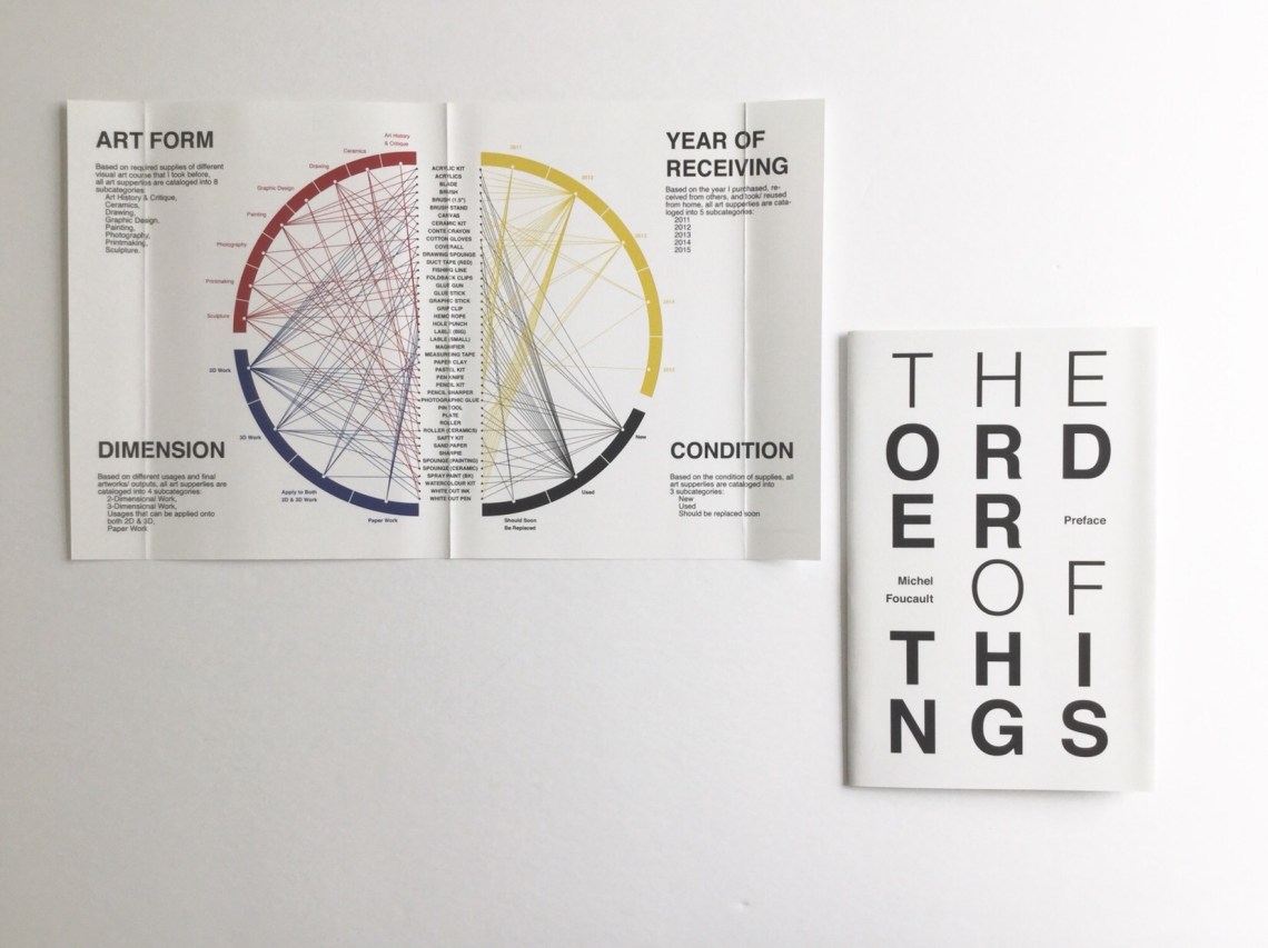 This is an information design project features French writer Michel Foucault’s preface article and the data visualizing graphics of all of my art supplies.